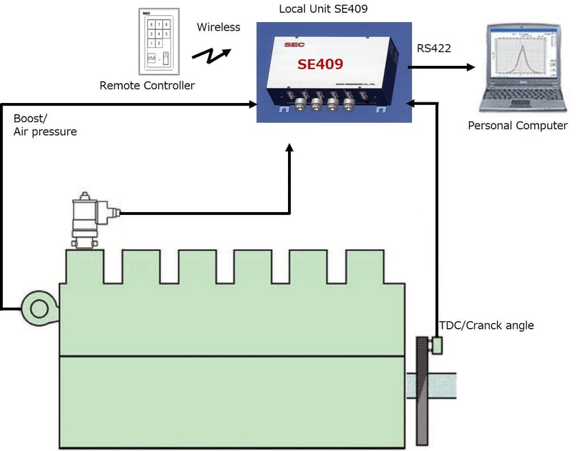 SEC system consists of a combustion pressure sensor mounted on each cylinder, a local unit (SE409) near the engine and a main monitor (SE203C/S) located in the engine control room.